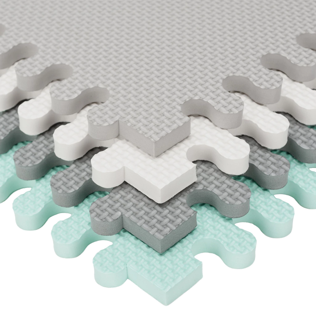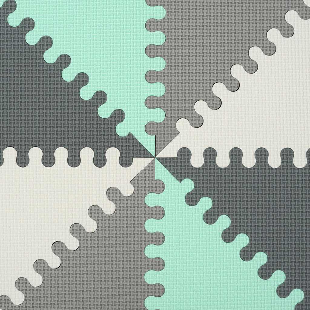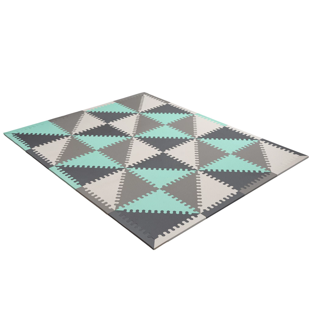 Transformá tu espacio en minutos con este piso de goma EVA estilo nórdico. Su diseño triangular en tonos arena y blanco crea una base segura, acolchada y visualmente armónica para que los más peques jueguen, gateen o exploren sin frío ni golpes.